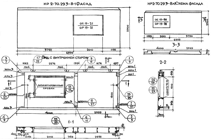 НР2-70.29.3-8-1 Наружная стеновая панель рядовая по Серии 1.132-1.