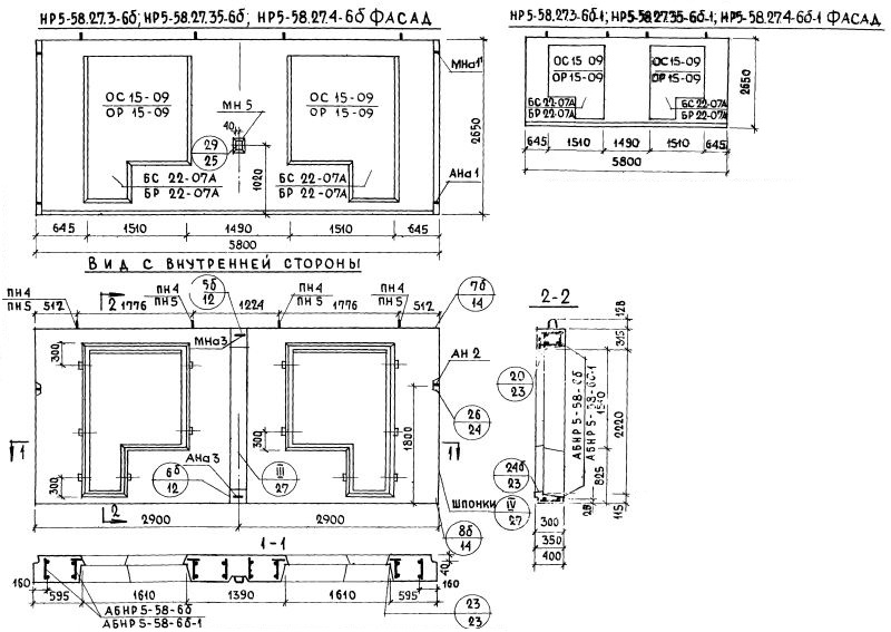 НР5-58.27.4-6б-1   Наружная стеновая панель рядовая по Серии 1.132-1.