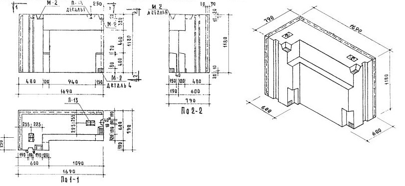 Стеновые легкобетонные блоки толщиной 60 см по Серии 1.133-1.
